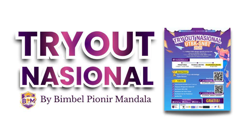 Tryout Nasional adalah kegiatan simulasi ujian berskala nasional yang bertujuan untuk membantu peserta mempersiapkan diri menghadapi ujian sebenarnya, seperti ujian masuk perguruan tinggi atau ujian sekolah. Melalui tryout ini, peserta dapat mengukur kemampuan akademiknya, mengenali tipe-tipe soal, serta melatih strategi dalam mengelola waktu dan tekanan saat ujian. Selain itu, hasil tryout juga dapat digunakan sebagai evaluasi untuk mengetahui kelebihan dan kekurangan peserta, sehingga mereka dapat memperbaiki dan meningkatkan performa belajar secara lebih terarah dan efektif.