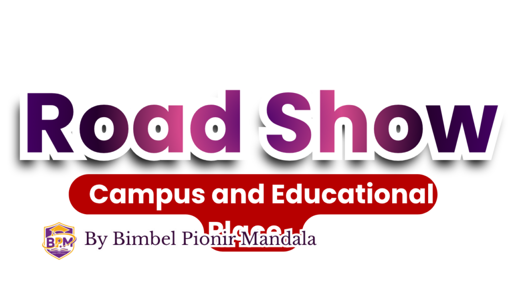 Road Show Campus and Educational Place adalah kegiatan kunjungan edukatif ke berbagai kampus dan tempat pendidikan yang bertujuan untuk memberikan wawasan kepada siswa mengenai lingkungan akademik, fasilitas, serta peluang pendidikan yang tersedia. Melalui program ini, siswa dapat berinteraksi langsung dengan mahasiswa, dosen, dan tenaga pendidik, sekaligus memperoleh informasi tentang program studi, kehidupan kampus, dan jalur masuk perguruan tinggi. Kegiatan ini diharapkan dapat memotivasi siswa untuk melanjutkan pendidikan ke jenjang yang lebih tinggi serta membantu mereka dalam menentukan pilihan karier dan bidang studi yang sesuai dengan minat dan bakatnya.
